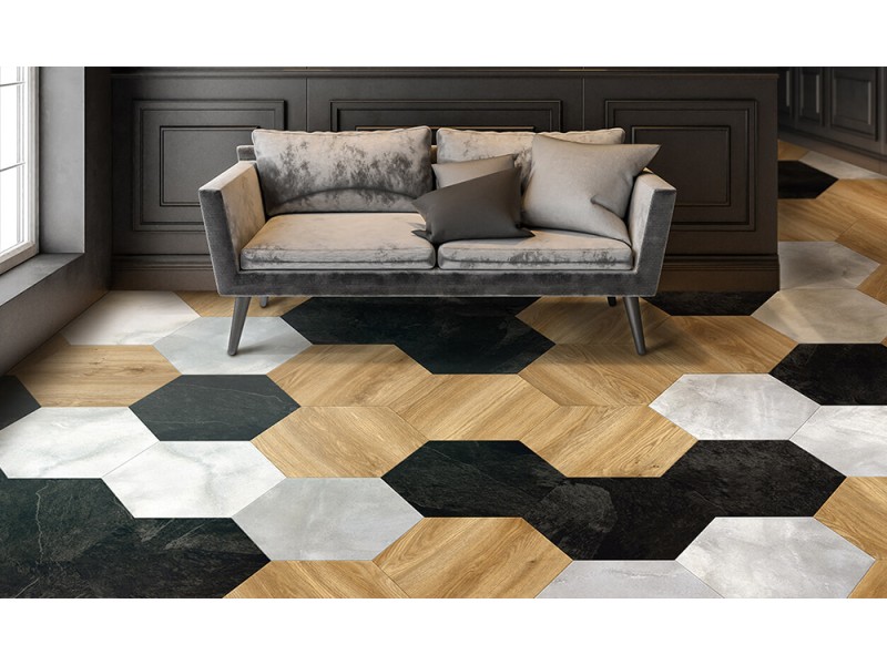 Сейчас набирает популярность керамическая плитка, которая выглядит как ламинат или паркет. Может быть выполнена в виде кожи, или натурального камня. При этом это не просто рисунок, это полностью фактурный пол, который повторяет рисунок. И очень часто с первого взгляда сложно отличить что именно перед вами. Такие полы отлично подходят для офиса, или для прихожей и ванны, так как керамическая плитка достаточно прочная и не восприимчива к влаге.